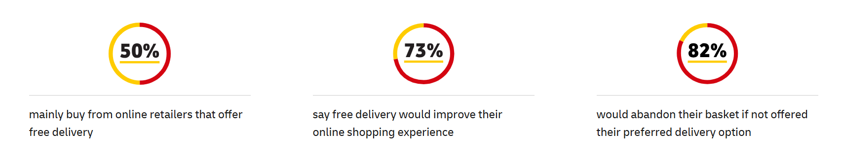 Pembeli Black Friday amat menitikberatkan penghantaran percuma, dan mereka kini lebih memilih tempat membeli berdasarkan polisi penghantaran dan pemulangan. Dalam tempoh jualan besar seperti Black Friday, caj tambahan memainkan perasan besar dalam menentukan sama ada pelanggan meneruskan pembelian atau meninggalkan cart.