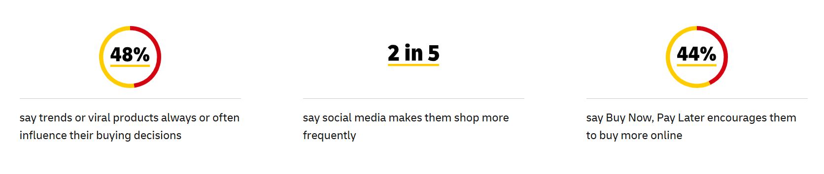 Pembeli hari ini sangat dipengaruhi oleh suara pengguna sebenar. Sebanyak 64% mengatakan keputusan mereka dipengaruhi oleh review pembeli dia media sosial. Selain itu, kecenderungan mereka untuk membeli tidak terhad kepada Black Friday sahaja. 52% menyatakan mereka akan membeli lebih banyak apabila menerima tawaran atau kod diskaun daripada peniaga.