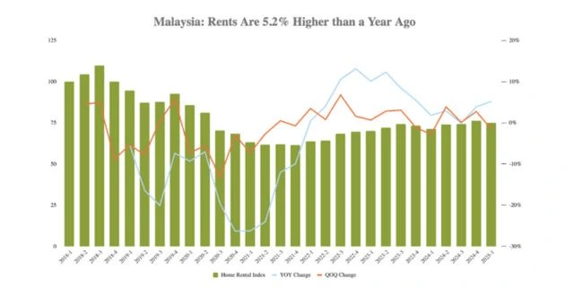 Menurut IQI Global, purata sewa di Malaysia menurun daripada RM2,052 pada Q4 2024 kepada RM2,020 pada Q1 2025 — penurunan 1.6% ini memberi sedikit kelegaan kepada penyewa dalam keadaan tekanan kos sara hidup.