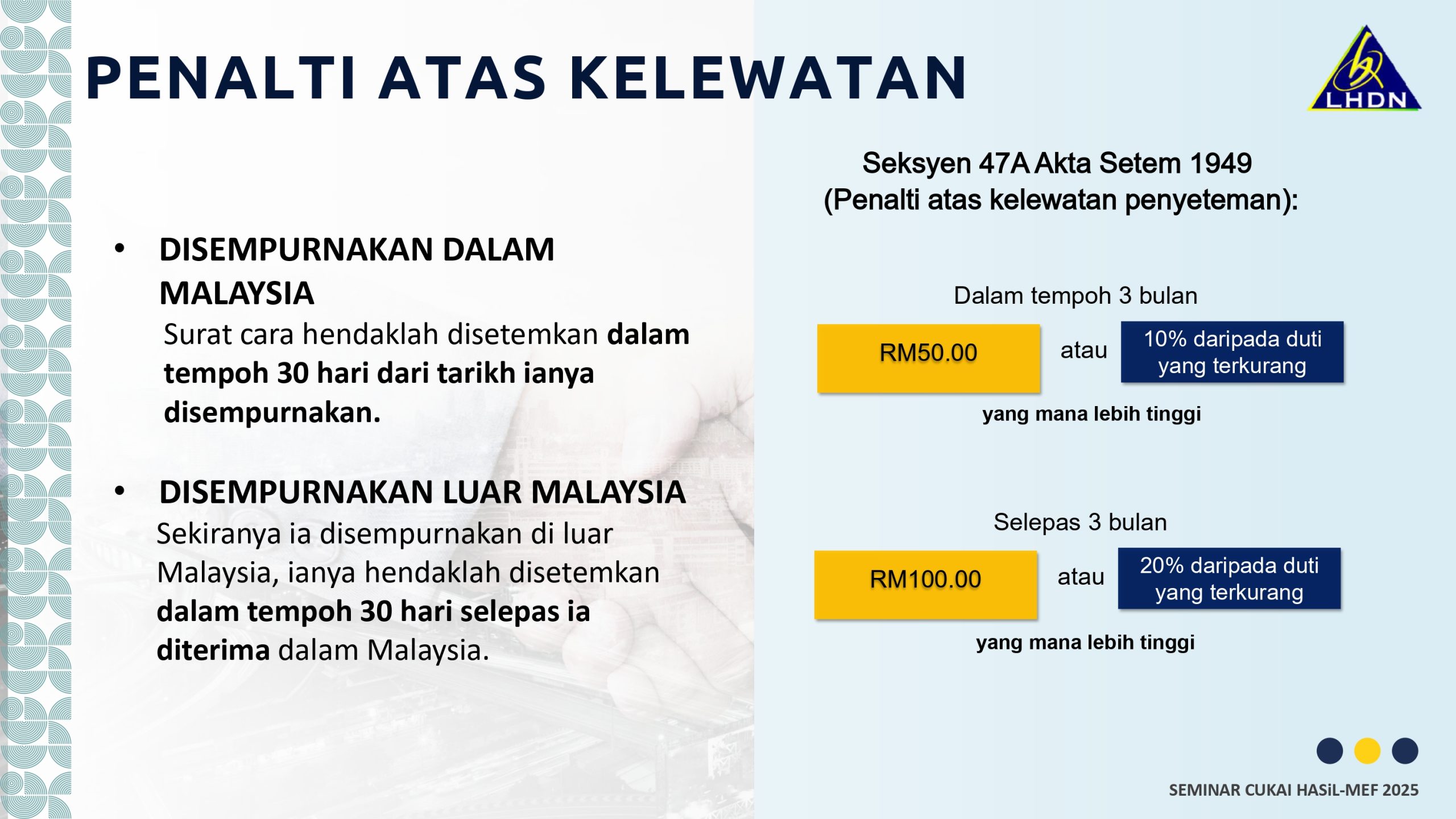 | Pegawai LHDN: ✓ Mengira duti setem; dan ✓ Mengeluarkan notis taksiran |
