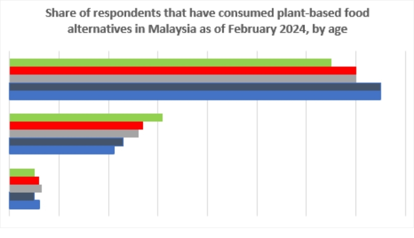 Menurut tinjauan mengenai pengambilan makanan berasaskan tumbuhan di Malaysia oleh Rakuten Insight, majoriti responden dari semua kumpulan umur menyatakan bahawa mereka pernah mengambil alternatif berasaskan tumbuhan sebagai pengganti produk haiwan.