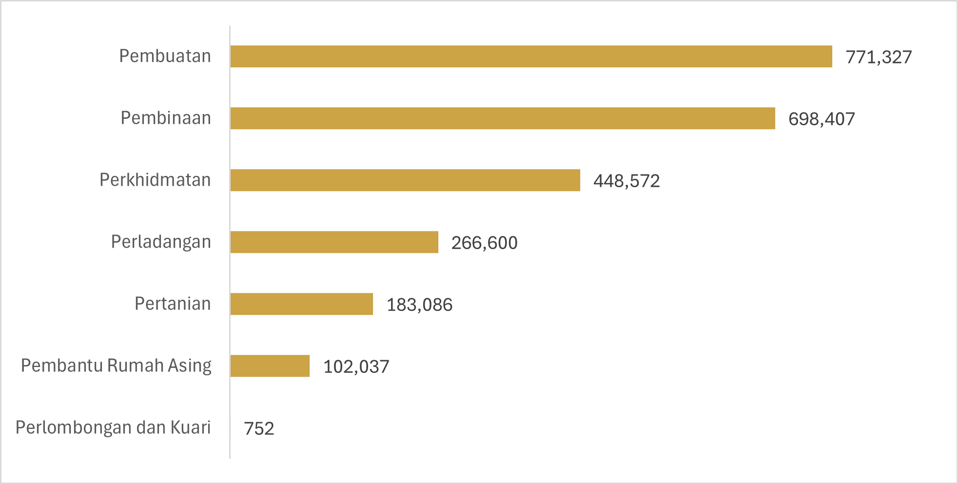 - Menurut laporan Jabatan Imigresen Malaysia (JIM), hampir 2.47 juta pekerja asing aktif bekerja di enam sektor formal dan satu sektor tidak formal di Malaysia setakat September 2024.