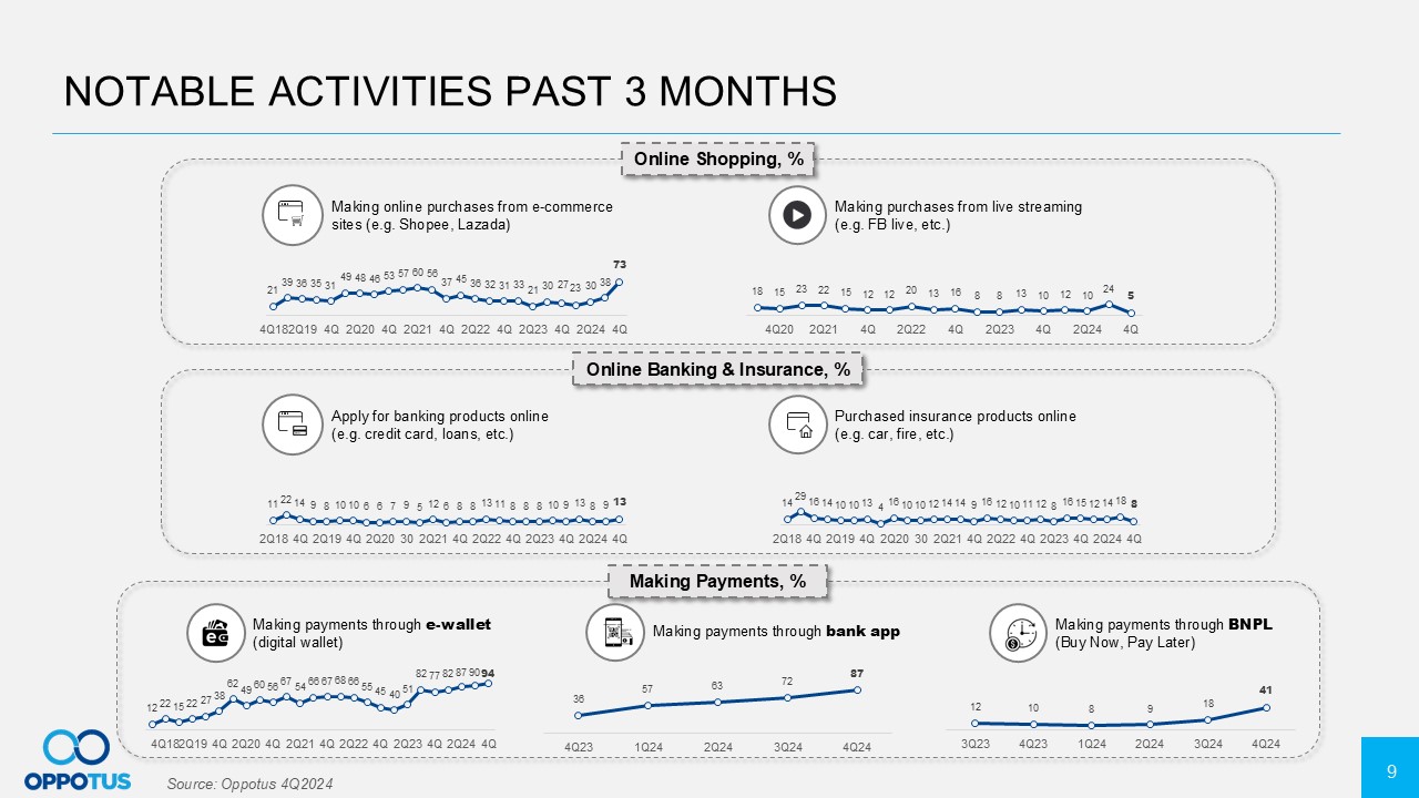 Kajian terhadap aktiviti rakyat Malaysia dalam tempoh tiga bulan terakhir menunjukkan perubahan ketara dalam sektor seperti pilihan kaedah pembayaran, membeli-belah, pelancongan, pengambilan makanan dan permainan video game.