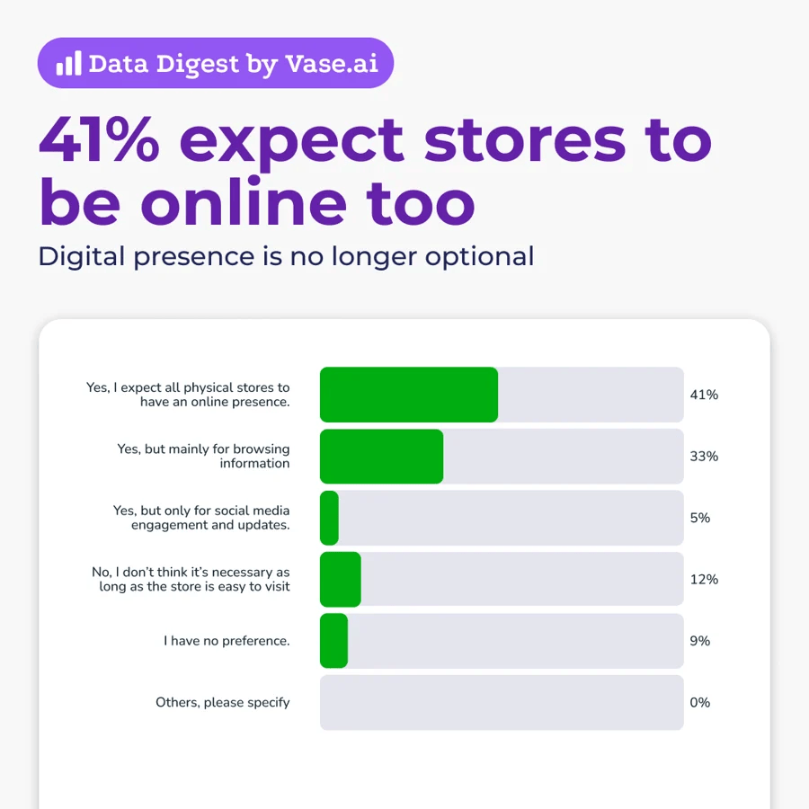41% menjangkakan kedai fizikal turut mempunyai kehadiran online.
