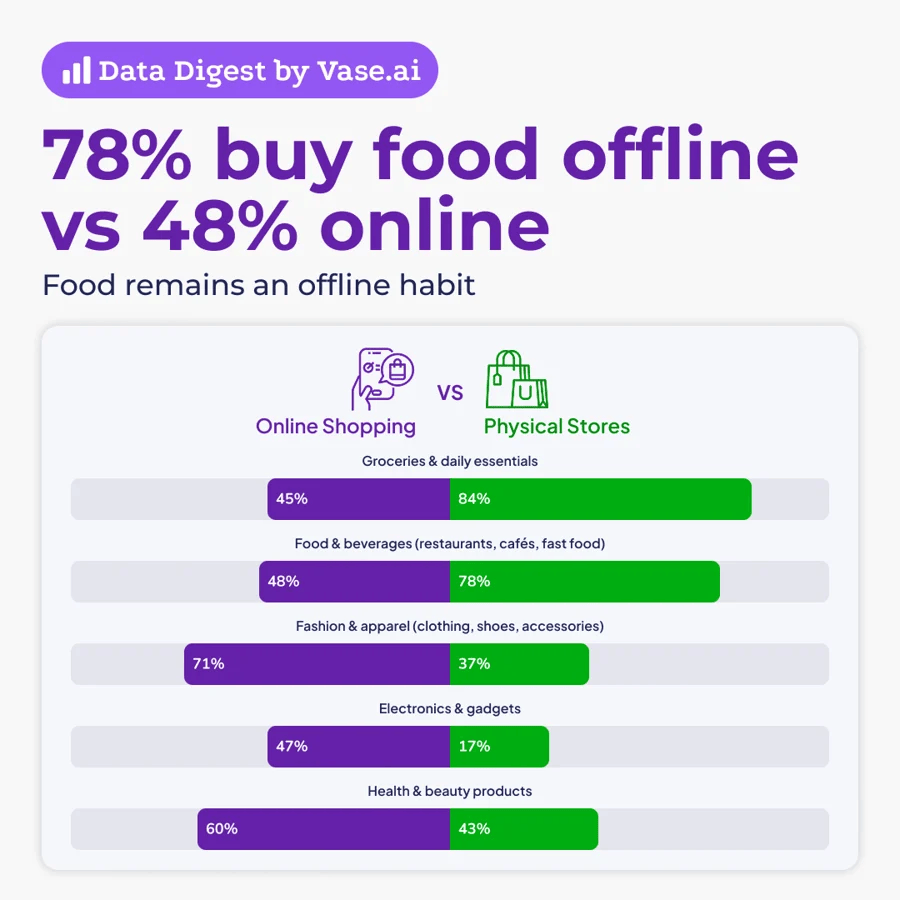 Ringkasnya: Kategori F&B kekal sebagai antara segmen paling dominan untuk pembelian secara offline.