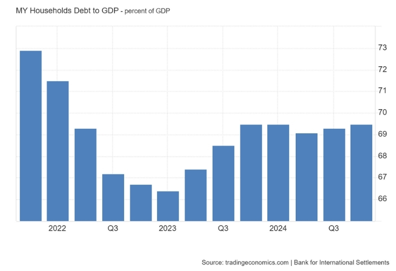 Malaysia kini berdepan cabaran ketara apabila paras hutang isi rumah mencapai 69.5% daripada KDNK pada akhir 2024 dan melonjak kepada 84.3% menjelang Mac 2025 dengan jumlah mencecah RM1.65 trilion.