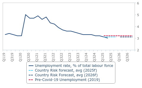 Malaysia – Unemployment Rate, % of labour force (2019-2026)