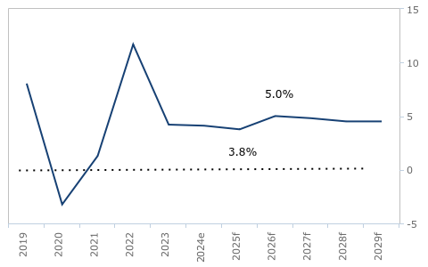 Malaysia – Total Household Spending, Real % y-o-y (2019-2029)